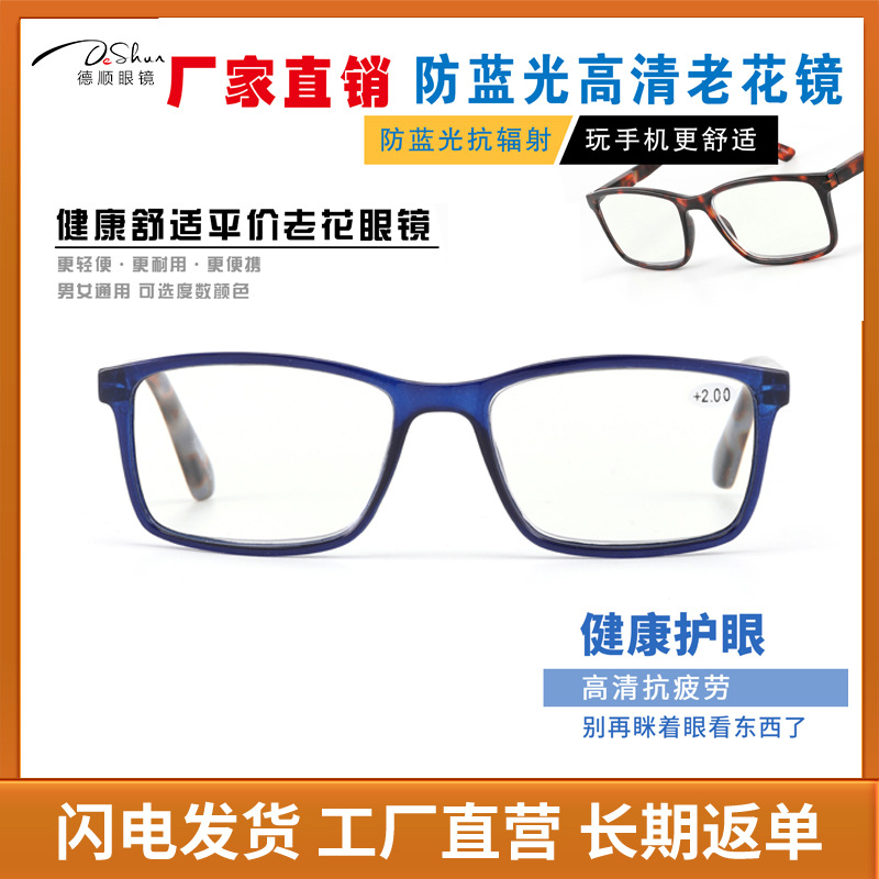 Cross-border export spot anti-blue light reading glasses PC built-in slingshot full-frame square stall cheap hot selling