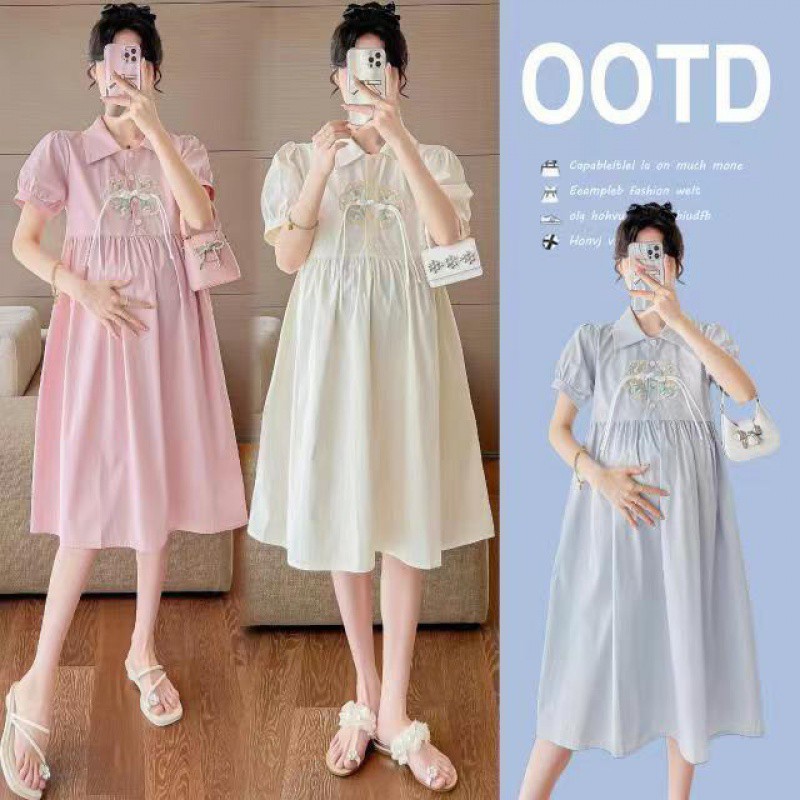 2024 new maternity dress summer new Chinese style embroidery pregnant women dress long loose plus size skirt