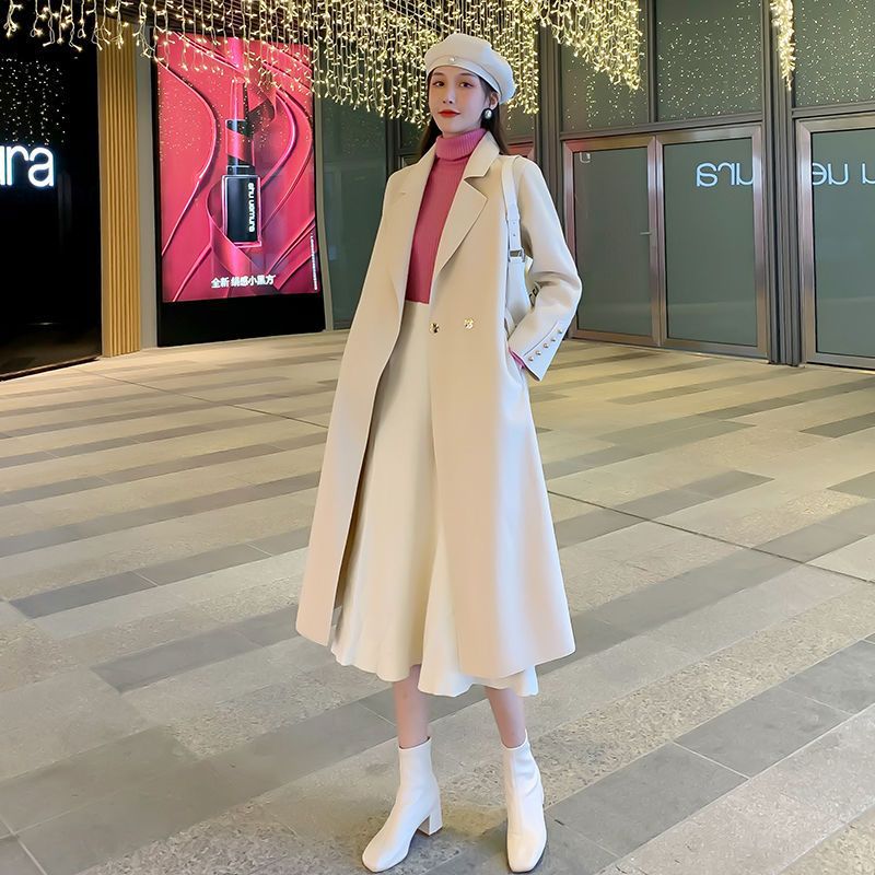 Autumn and winter wool double-sided woolen suit collar coat long small women’s double-sided cashmere woolen coat