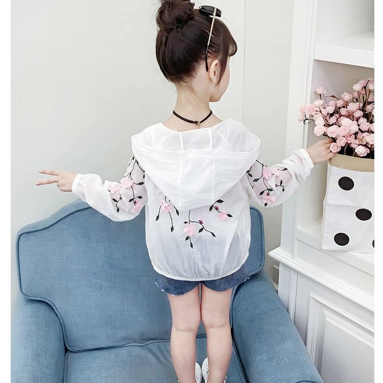Girls’ Sunscreen Clothing 2022 New Western Style Anti-UV Ice Silk Thin Exquisite Embroidered Beach Clothes Children’s Coat