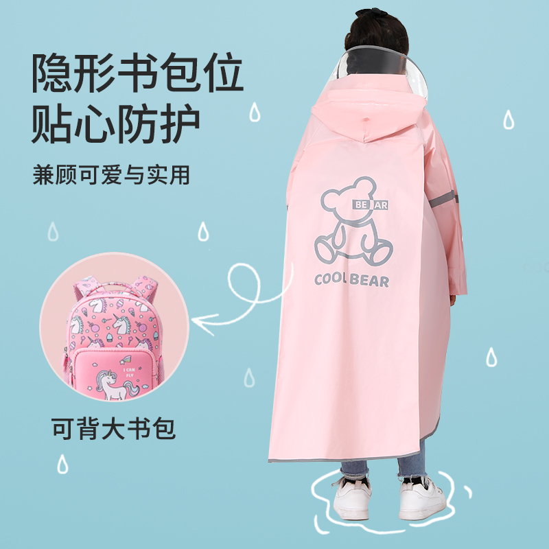ZJ05 children’s raincoat boys and girls Baby students School long body waterproof medium and big children with schoolbag
