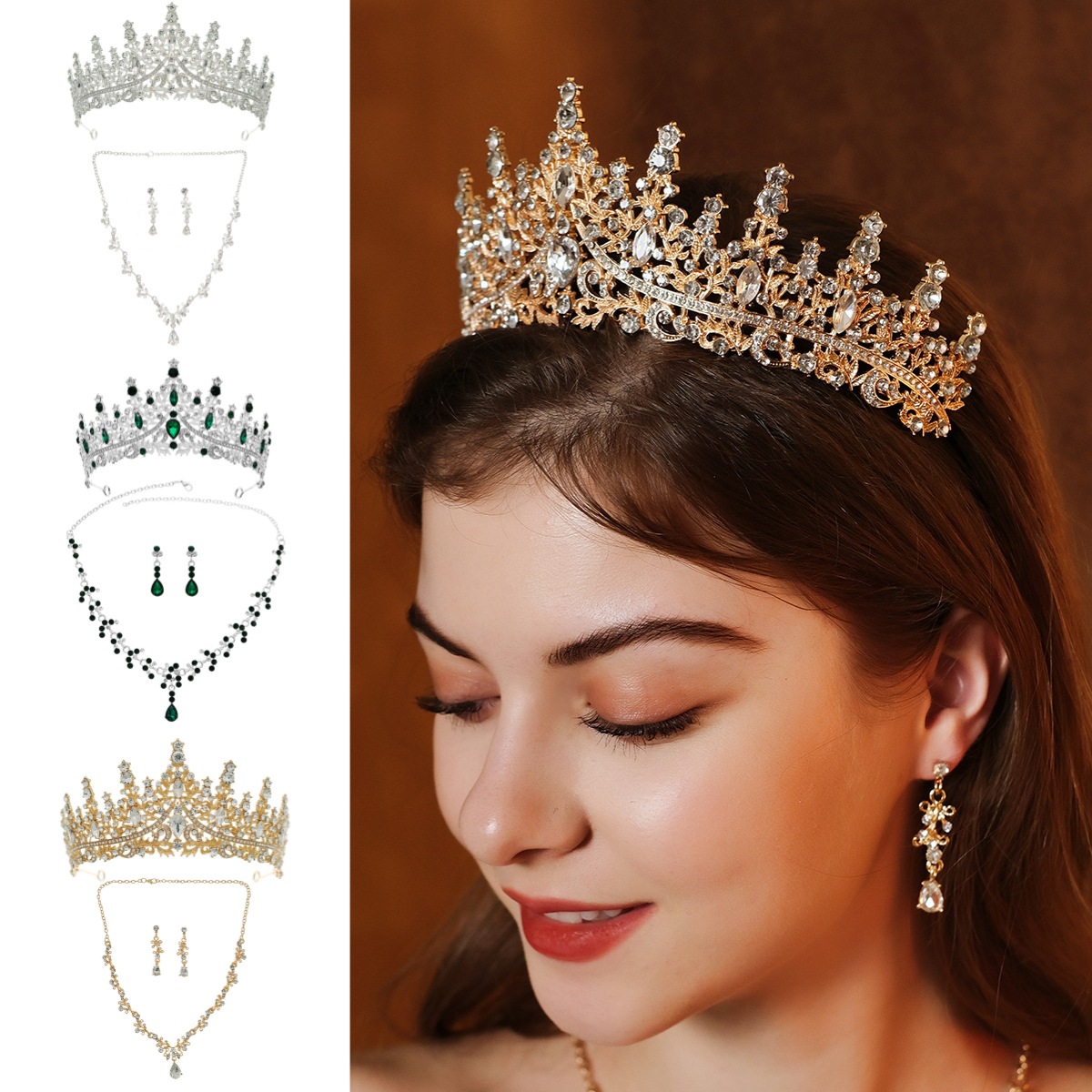 Cross-border new crown necklace earrings luxury all-match wedding banquet jewelry alloy rhinestone bridal crown suit
