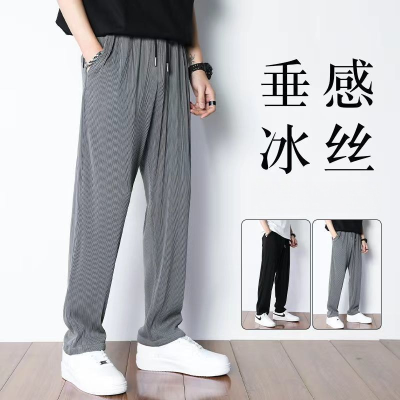 Ice Silk Pants Men’s Summer Thin Loose Leg Drapy Quick-drying Casual Trousers Trendy Nine-point Harlan Sports Pants
