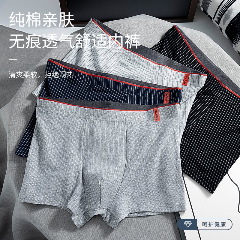 Traceless Juvenile Striped Men’s Boxer Shorts Summer Pure Cotton plus size Bacteriostatic Underwear Men’s Sports Boxer Shorts