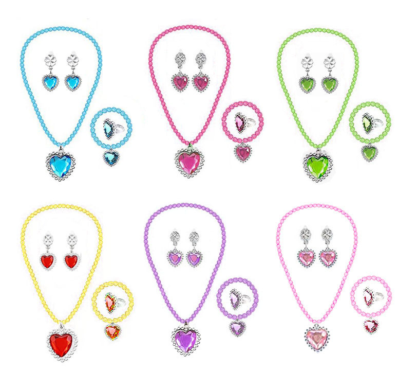Girls’ beaded necklace bracelet ear clip ring five-piece cross-border stage props toy jewelry set
