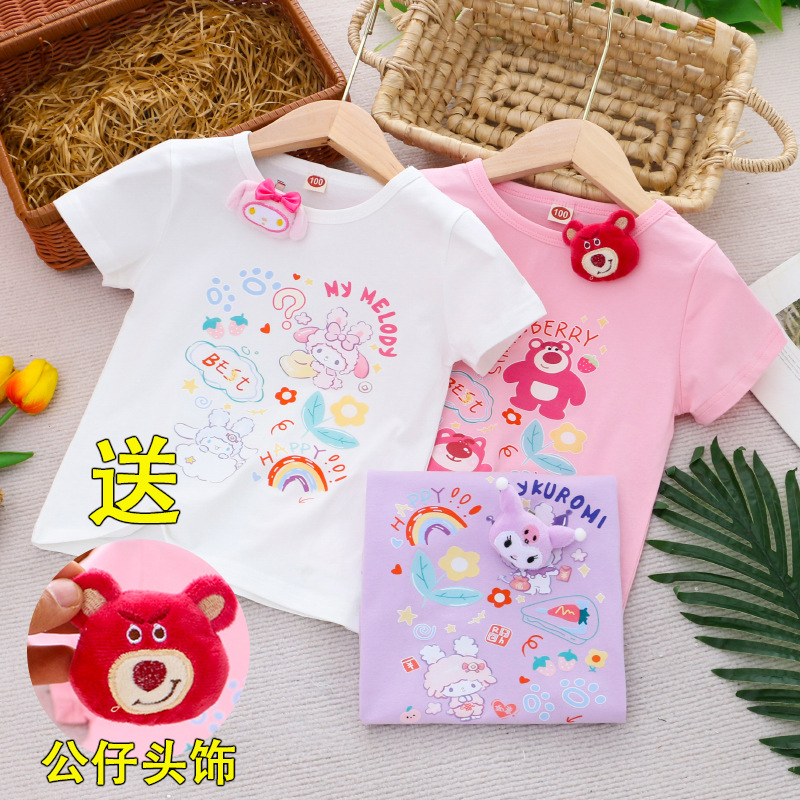 Children’s clothing 2024 girls summer new short sleeve T-shirt cartoon printing stereo doll base shirt jacket a generation of hair