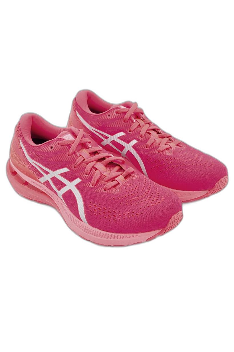 Neon Red/Silver Men’s Gel-Kayano 28 Lite-Show Running Shoes with Lace-Up.