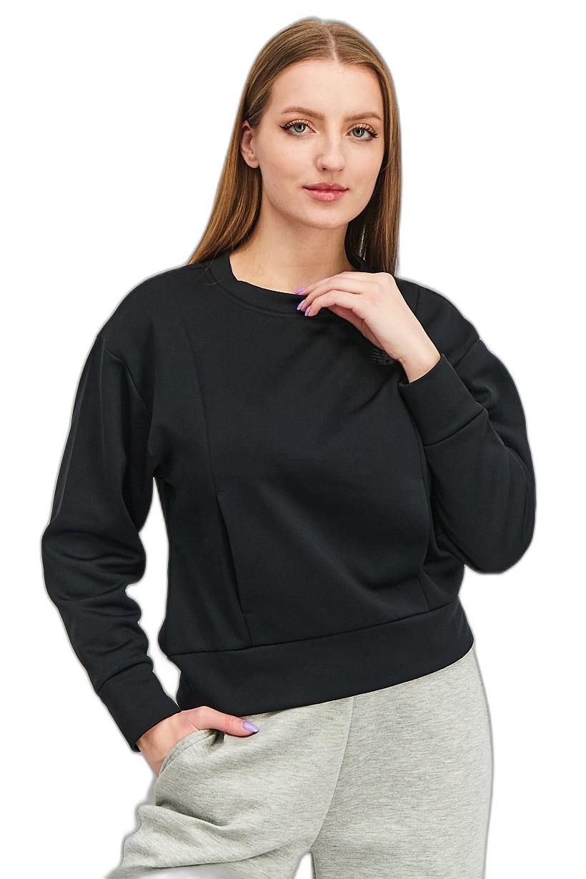 Black Women’s Sweatshirt with Brand Logo on Crew Neck.
