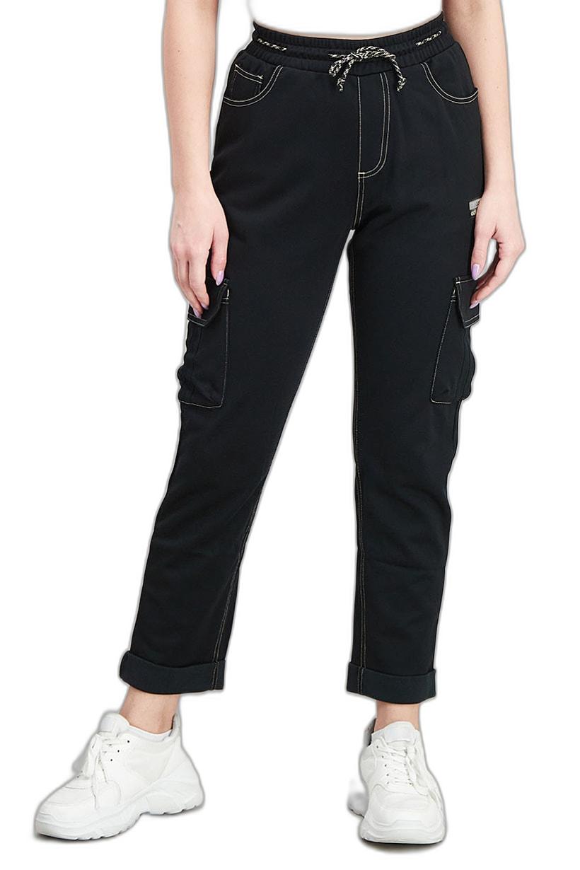 Black Sweatpants with Embroidered Logo and Drawstring for Women’s Training.