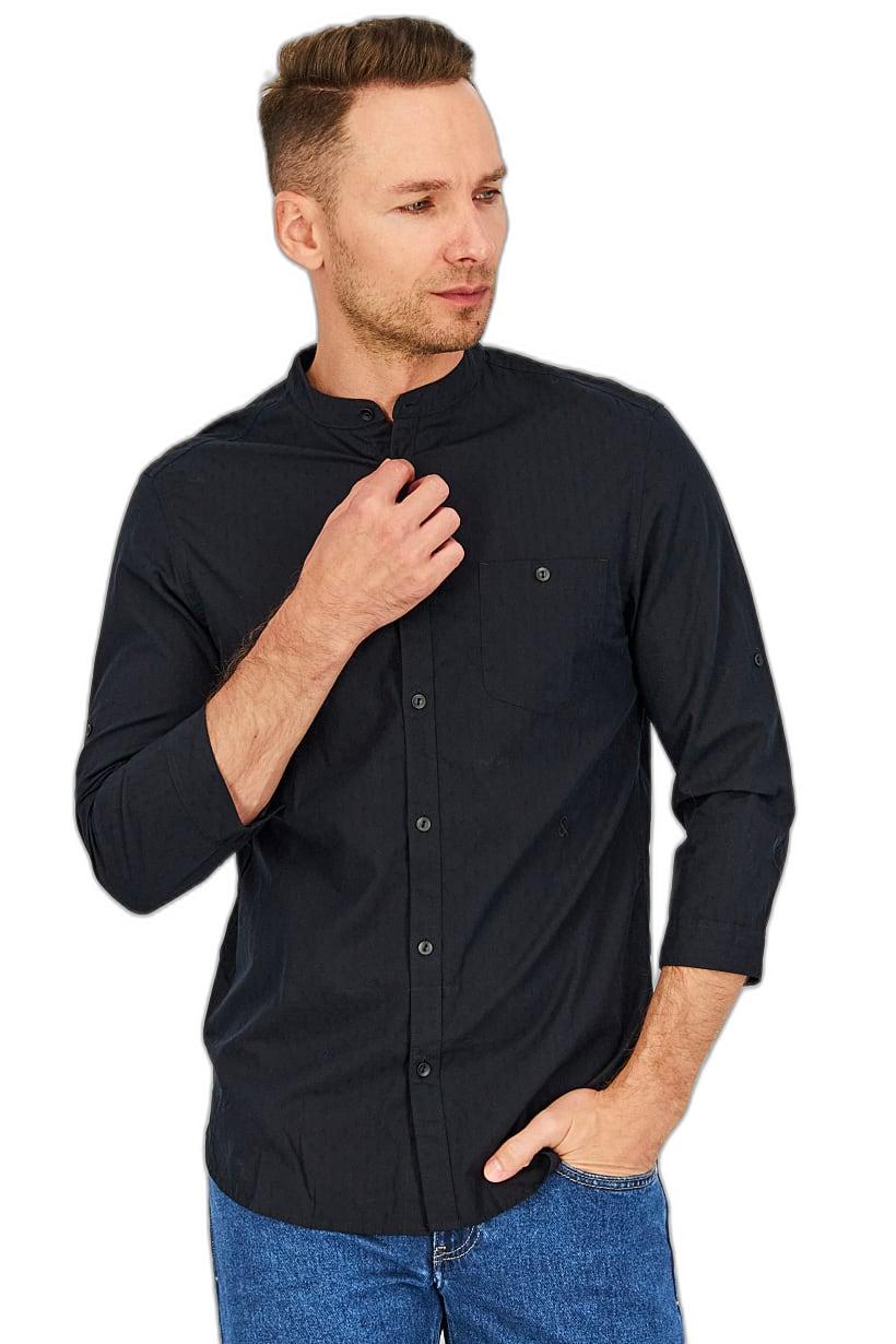 Black Solid Casual Shirt with Slim Fit for Men’s Long Sleeve.