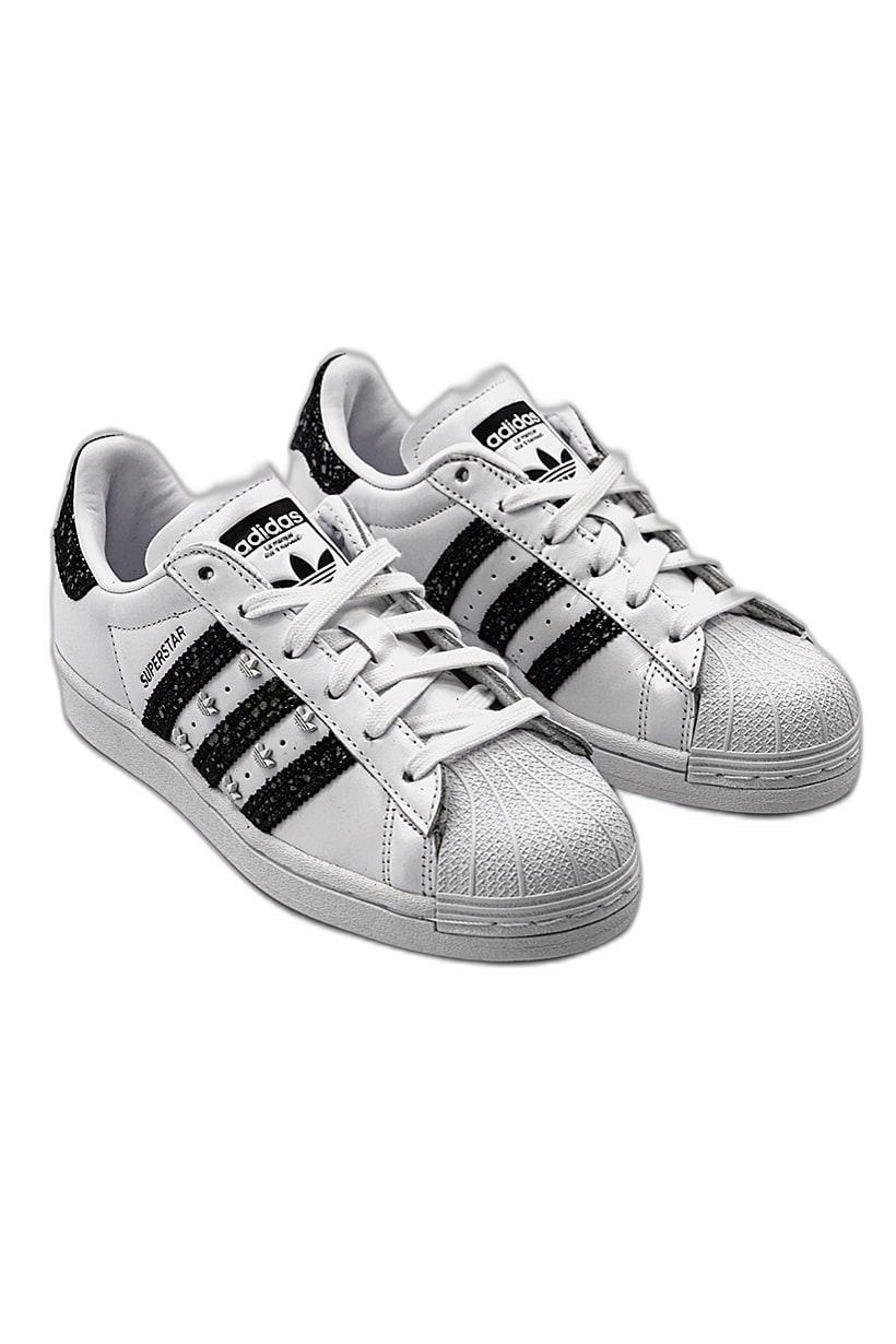 White and black lace-up shoes for women, Superstar style.
