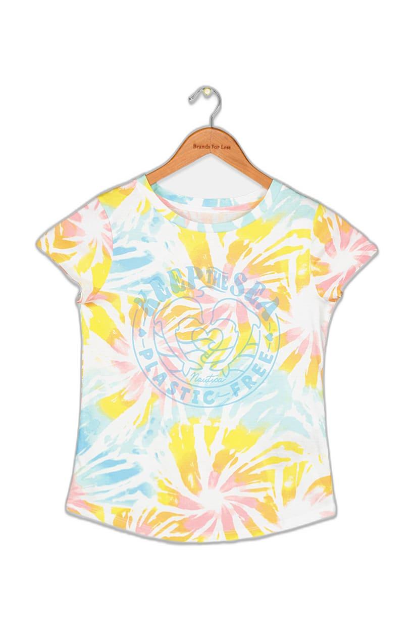 White Combo Tie Dye Tee for Girls with Short Sleeves.