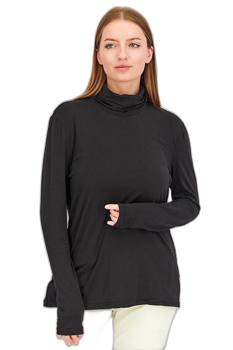 Black Solid Long Sleeve Turtle Neck Top for Women.