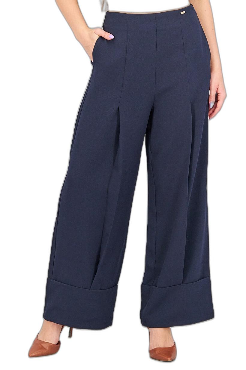 Navy Blue Trouser Pants with Cuffed Hem and Side Zip for Women’s Regular Fit.