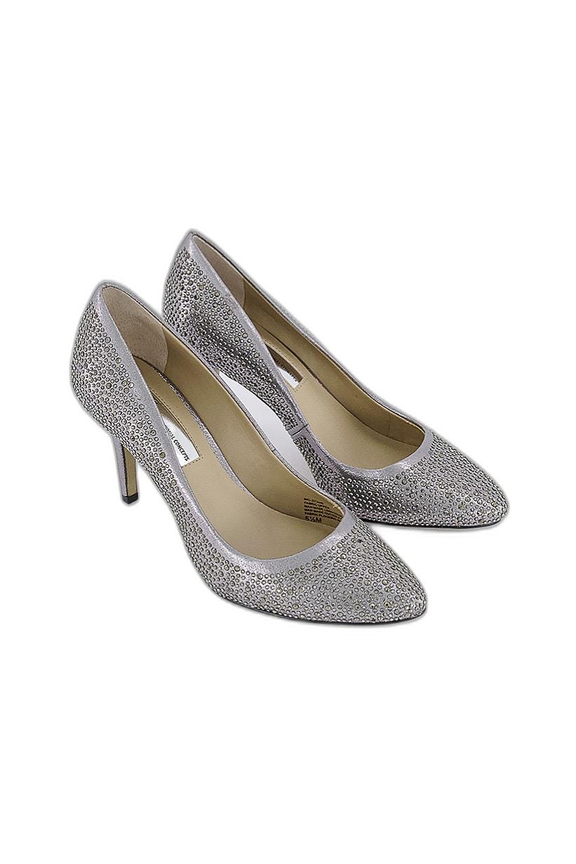 Pewter Pointed Toe Zitah Fabric Shoes for Women.