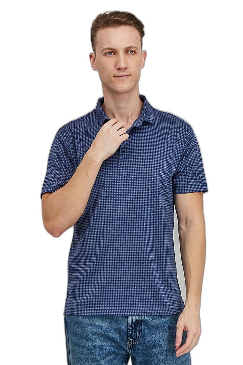 Navy Heather Sport Polo with Short Sleeves for Men.