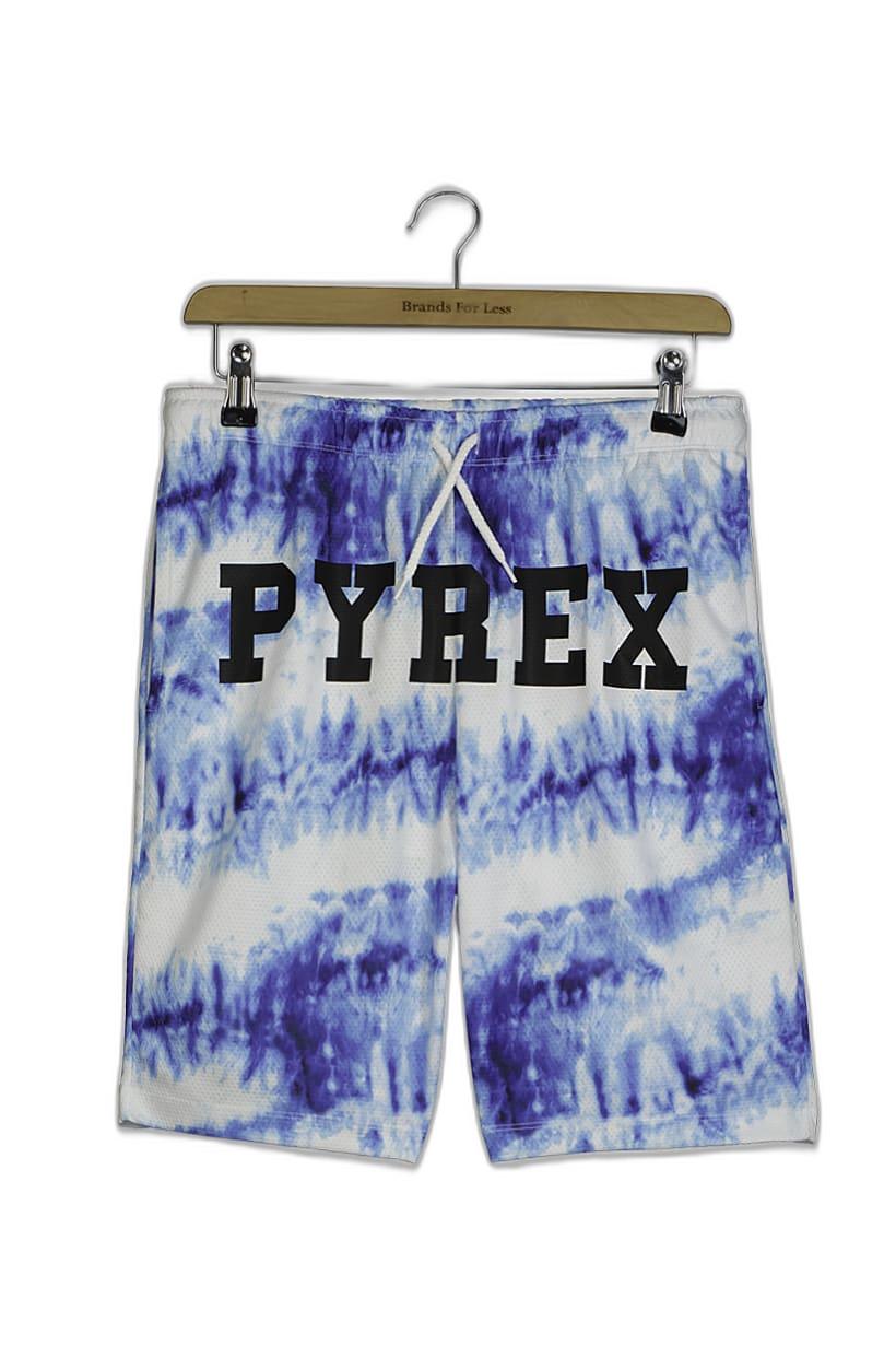 Blue and white tie-dye basketball shorts with drawstring for boys.