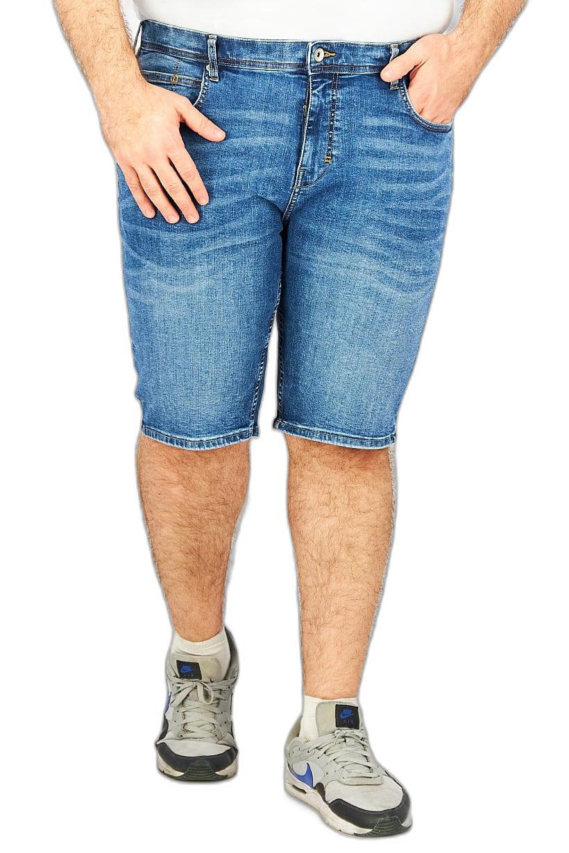 Blue Wash Cropped Denim Shorts for Men with Five Pockets and Slim Fit.