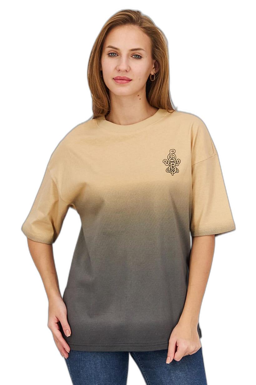 Beige and Grey Colorblock Sports T-shirt for Women’s Training.