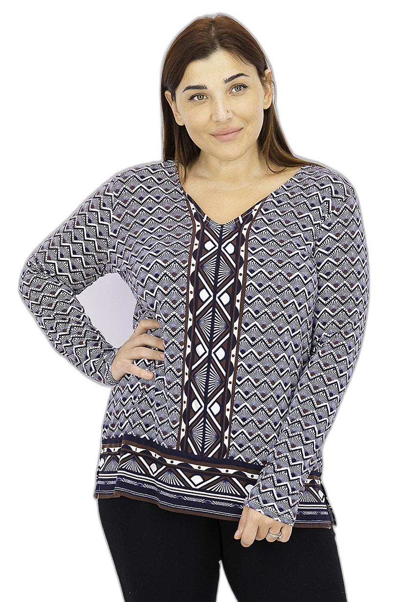 Navy Combo Fanta Knit Top for Women with Tunic Length.
