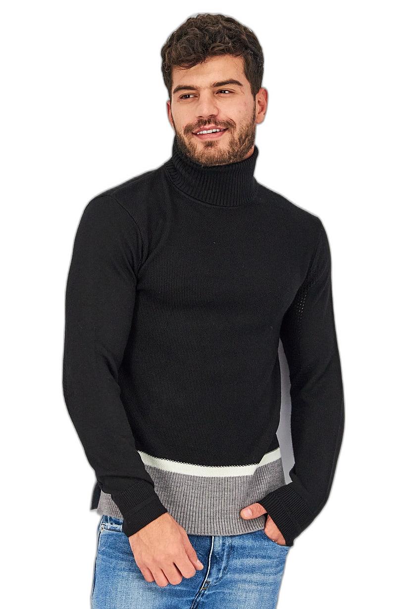 Knitted Men’s Turtle Neck Sweaters with Long Sleeves in Black/Grey.