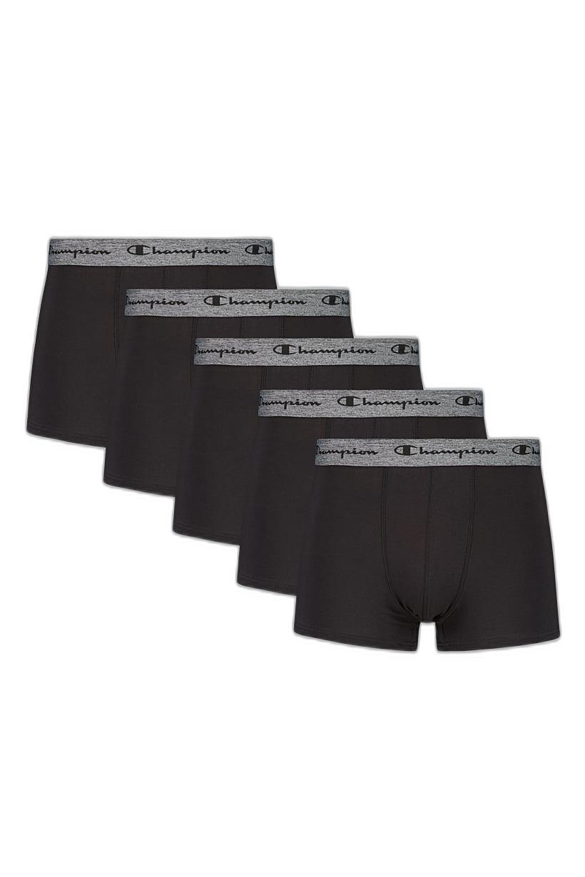 Set of 5 black boxer briefs for men.