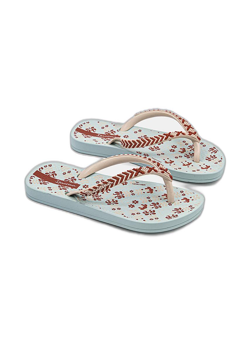 Turquoise and Red Combo Printed Slip On Slippers for Girls.
