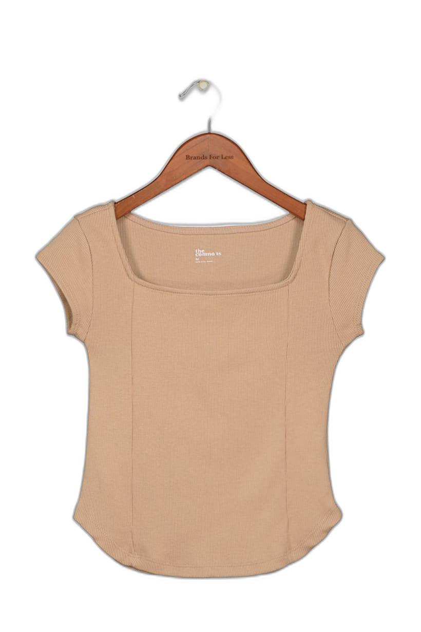 Kids Girl Square Neck Cap Sleeve Textured Top, Light Brown