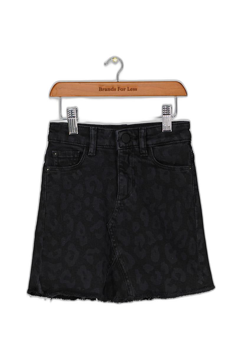 Black Printed Denim Skirt for Toddler Girls with Pull-On Design.