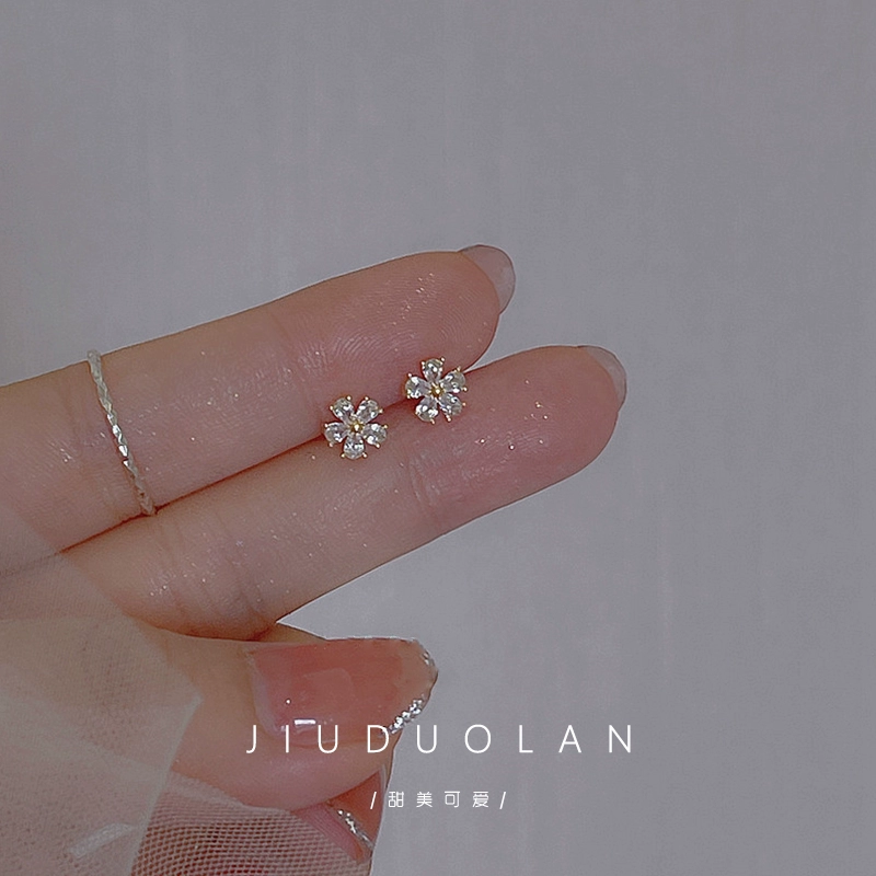 Shining vermiculite small flower earrings female 2024 new tide, simple, luxurious niche high -level sensor earrings ear decoration