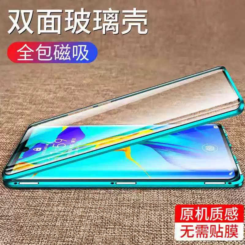Suitable for Huawei p20 mobile phone case double-sided p20p magnetic transparent glass mate20 all-inclusive protective cover mate20pro metal frame transparent p30 all-inclusive lens hard shell p30pro case