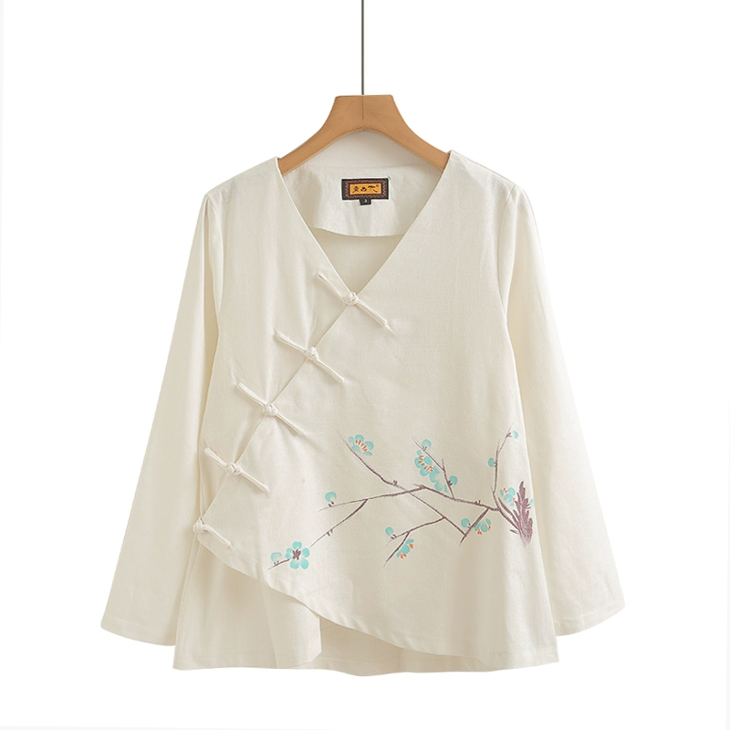 Chinese style retro loose T-shirt nine-quarter sleeve top