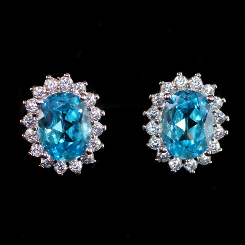 Korean version of aquamarine earrings for women, sterling silver, 18K gold plated, luxurious, atmospheric, hypoallergenic, colorful gem-inlaid earrings jewelry
