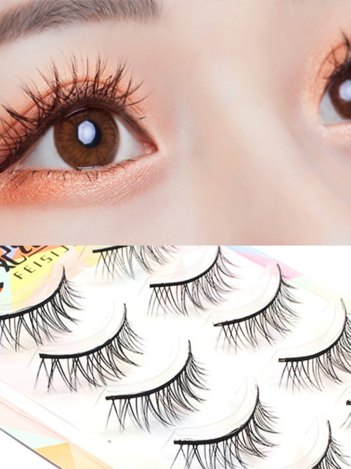 Feisi Eyelashes False Eyelashes for Women Natural Simulation No Makeup Short Black Stem Student Curly Japanese and Korean Cross Internet Celebrity Model M01