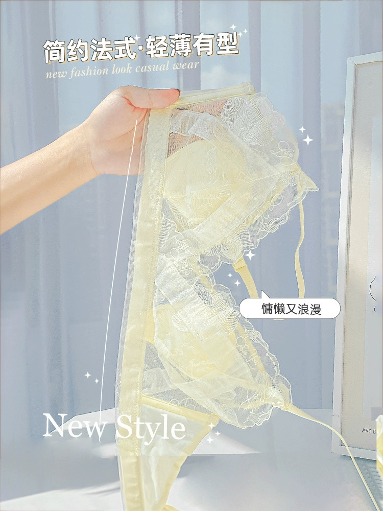 Sexy French Pure Underwear Girls Big breasts showing small breasts Summer ultra -thin, breathable lace no steel ring bra