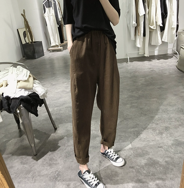 Literary nine-point pants for women in summer casual high waist linen