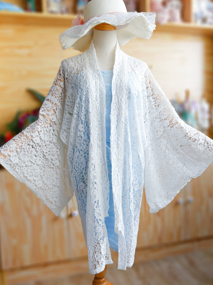 Japanese style feather woven coat and style lace hollow sun protection jacket mid-length Japanese style feather woven cardigan