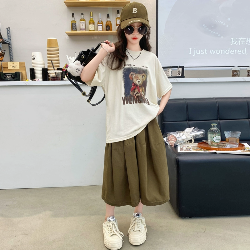 Girls and older children’s pure cotton casual two-piece set for junior high school students with short sleeves