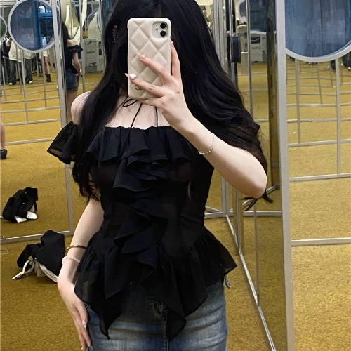 AW sleeveless ice silk knitted design niche bias shoulder strap