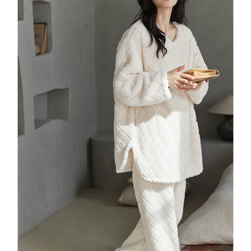 Coral velvet pajamas for women winter 2024 new simple pullover thickened plus velvet can be worn outside the home clothes two-piece set