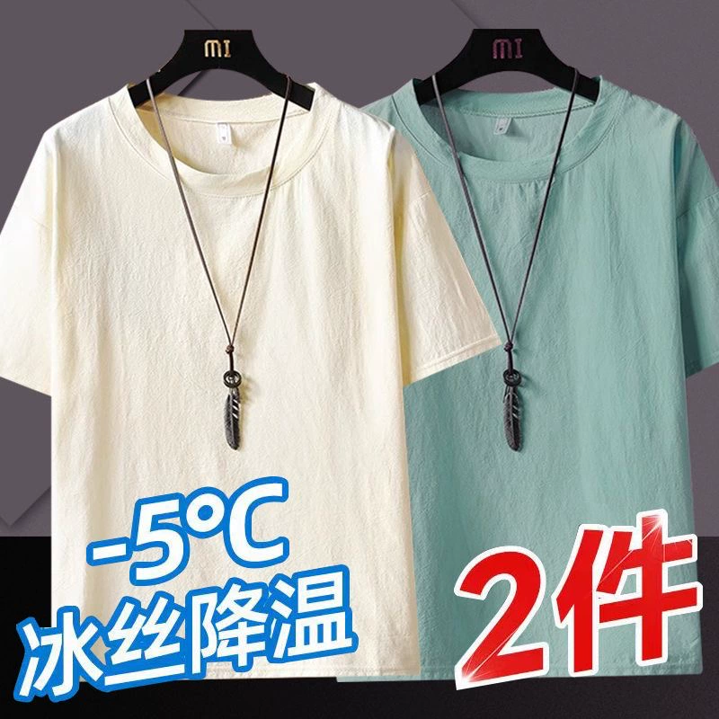 Ice silk short -sleeved T -shirt Men’s 2024 new flax speed dry pure color half -sleeved clothes summer thin loose men’s clothing