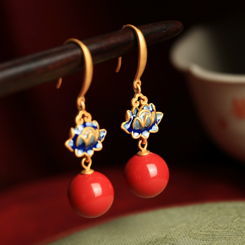Natural cinnabar female Chinese -style roasted blue to transport beads lotus lotus