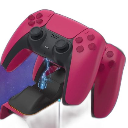 Dual P5 Charging Station with LED Indicator and Safety Chip Protection for DualSense Controllers, Upgraded Type C Fast Charging Dock Stand in Red Wine color. |