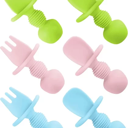 Set of 6 Silicone Baby Spoons and Fork for Self-Feeding and Baby Led Weaning. |