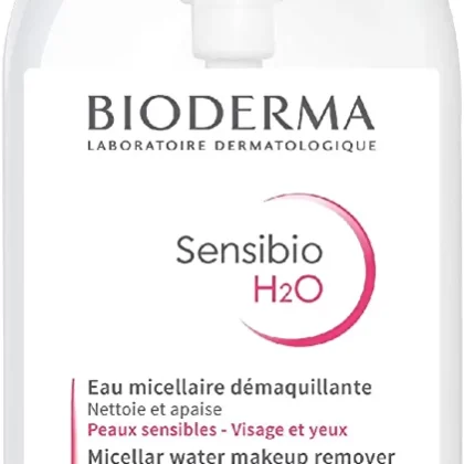 500ml pump bottle of BIODERMA Sensibio H2O Micellar Water for makeup removal. |