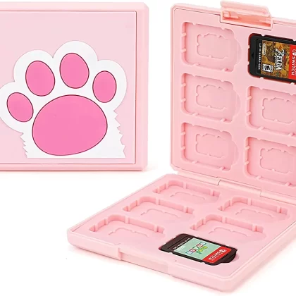 Nintendo Switch Game Card Case with 12 Slots, Portable and Protective Hard Shell Box for Cartridges, Featuring Cute Cat Paw Design. |