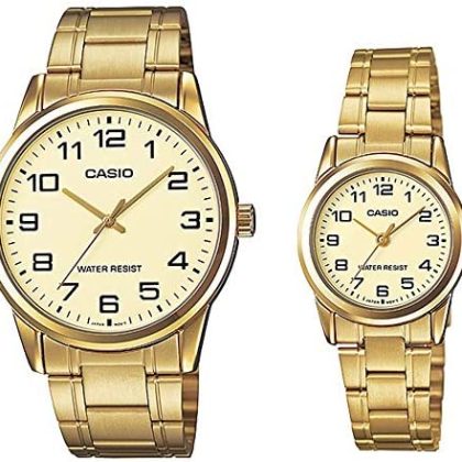 Gold Dial Stainless Steel Couple Watch by Casio - MTP/LTP-V001G-9BUDF. |