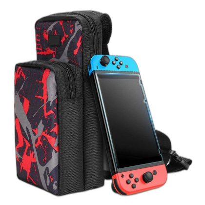 Nintendo Switch Travel Bag - Waterproof Shoulder Bag with Mesh Design and Black/Red Color. |