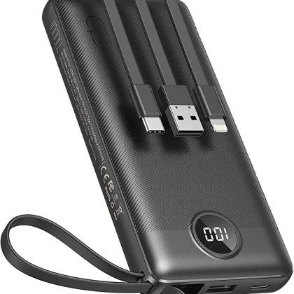 VEEKTONX 10000mAh Power Bank with 4 Outputs and Built-in Cables for iPhone, iPad, Samsung Galaxy (Black) |