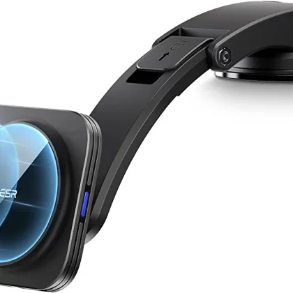 Magnetic wireless car charger with fast charging for iPhone 14/13/12 series. Can be used as a car mount holder. Available in black. |